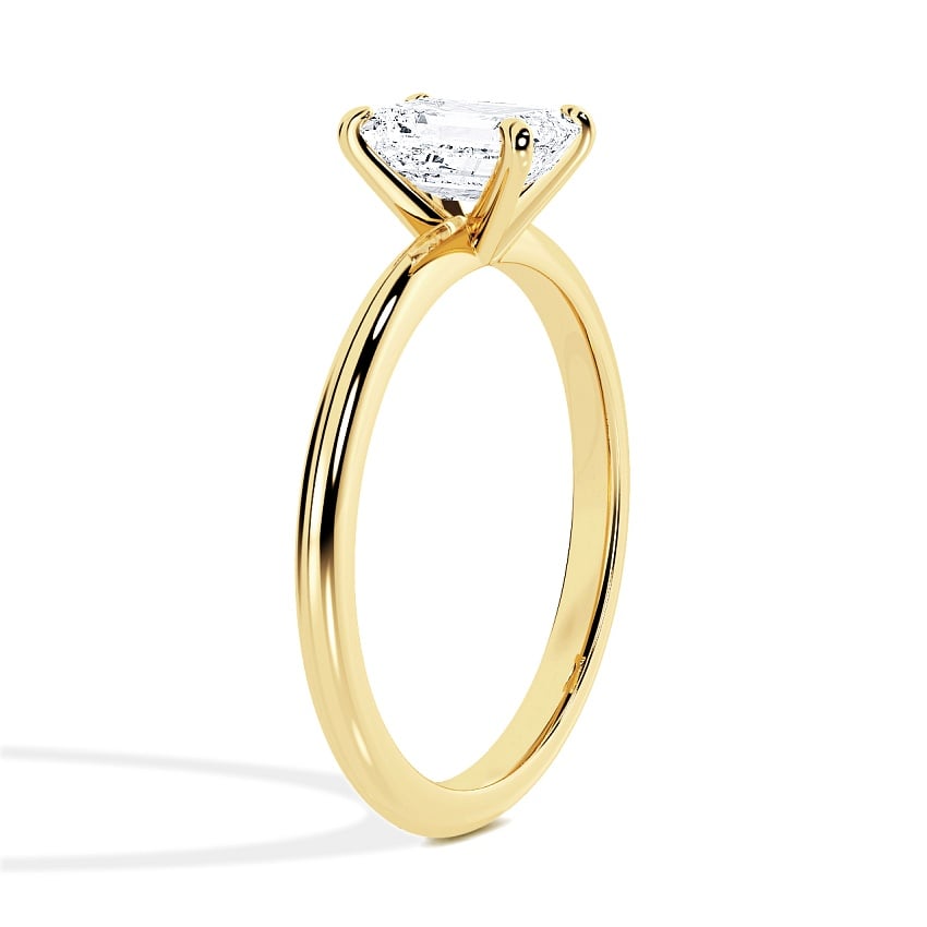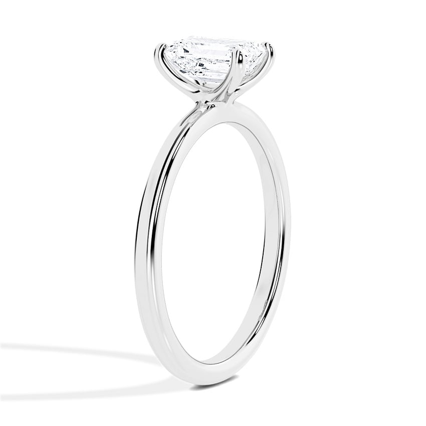 If you do choose a natural diamond, the price of an emerald cut engagement ring also depends on the 4 C’s: the color, clarity, cut and carat weight of the chosen gem. Additionally, the precious metal of the ring will also alter the cost, with 14-karat gold being an affordable option and platinum as a more opulent choice.
