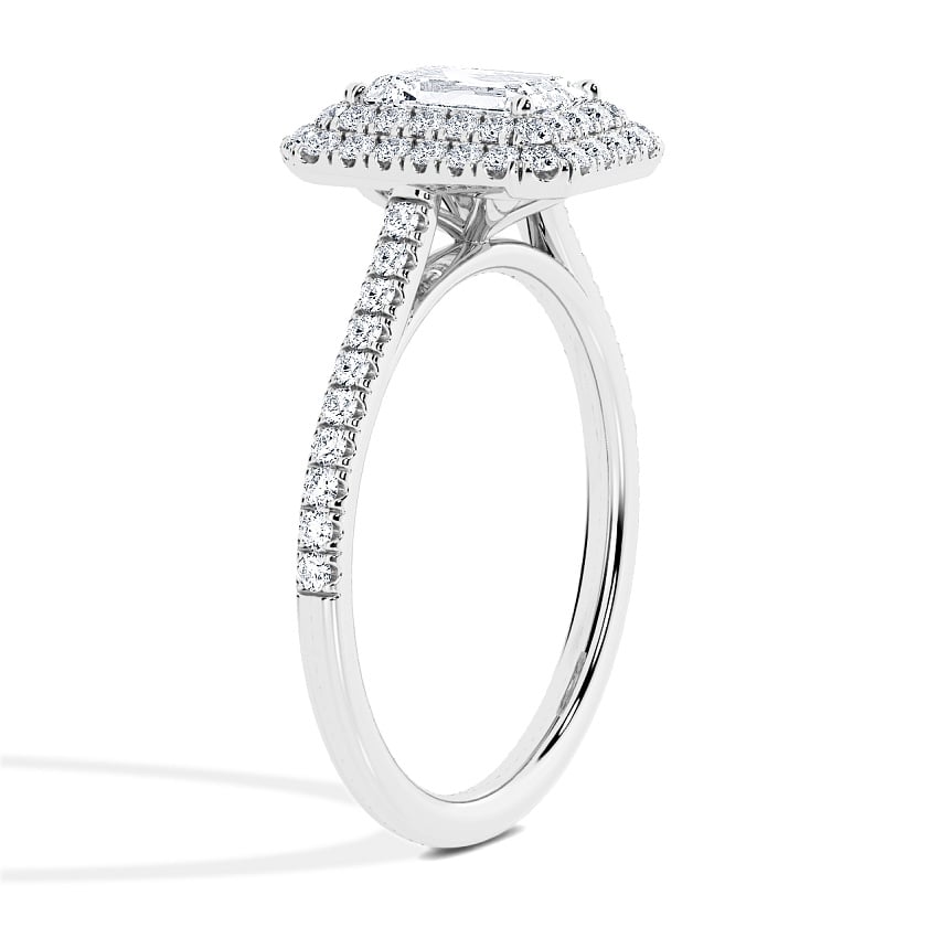 White gold and platinum are the best metals for emerald cut diamond engagement rings, as the pale hue shows off the stunning qualities of the diamond. Though for an ethereal, classic look, yellow gold can be a stunning match for an emerald cut engagement ring.