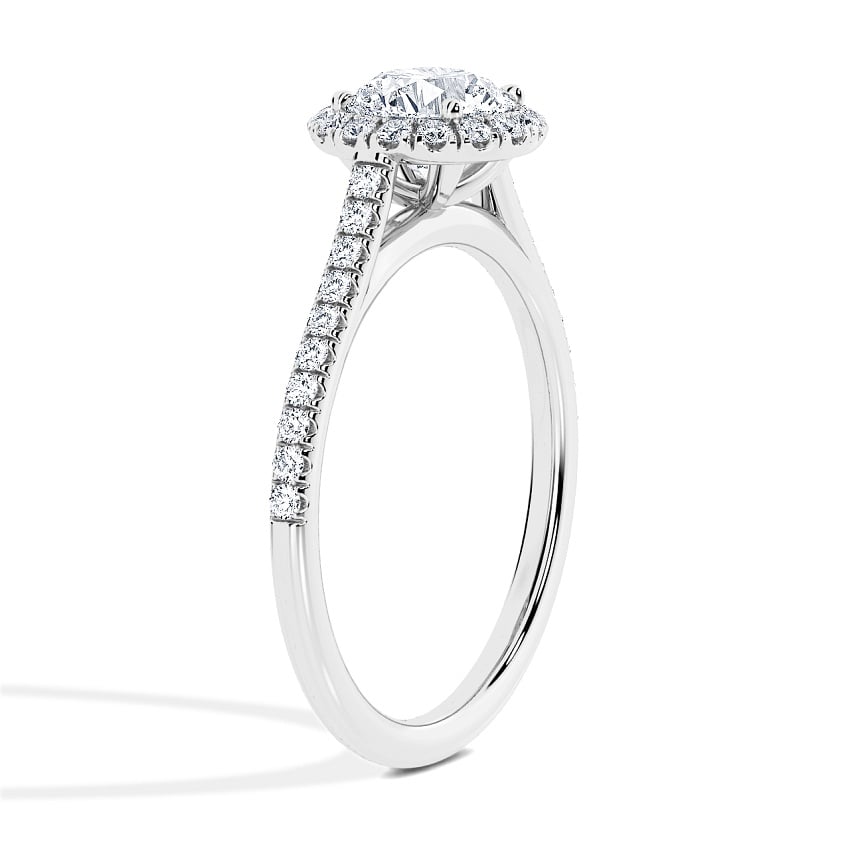 Halos look stunning no matter the carat size of the center stone. In fact, they really suit center stones with a lower carat weight since the halo can make it appear larger. Whether you choose a modest half carat center stone or a show-stopping two carat gem, there are no rules when it comes to halo settings, so feel free to get creative to really let your love story shine.
